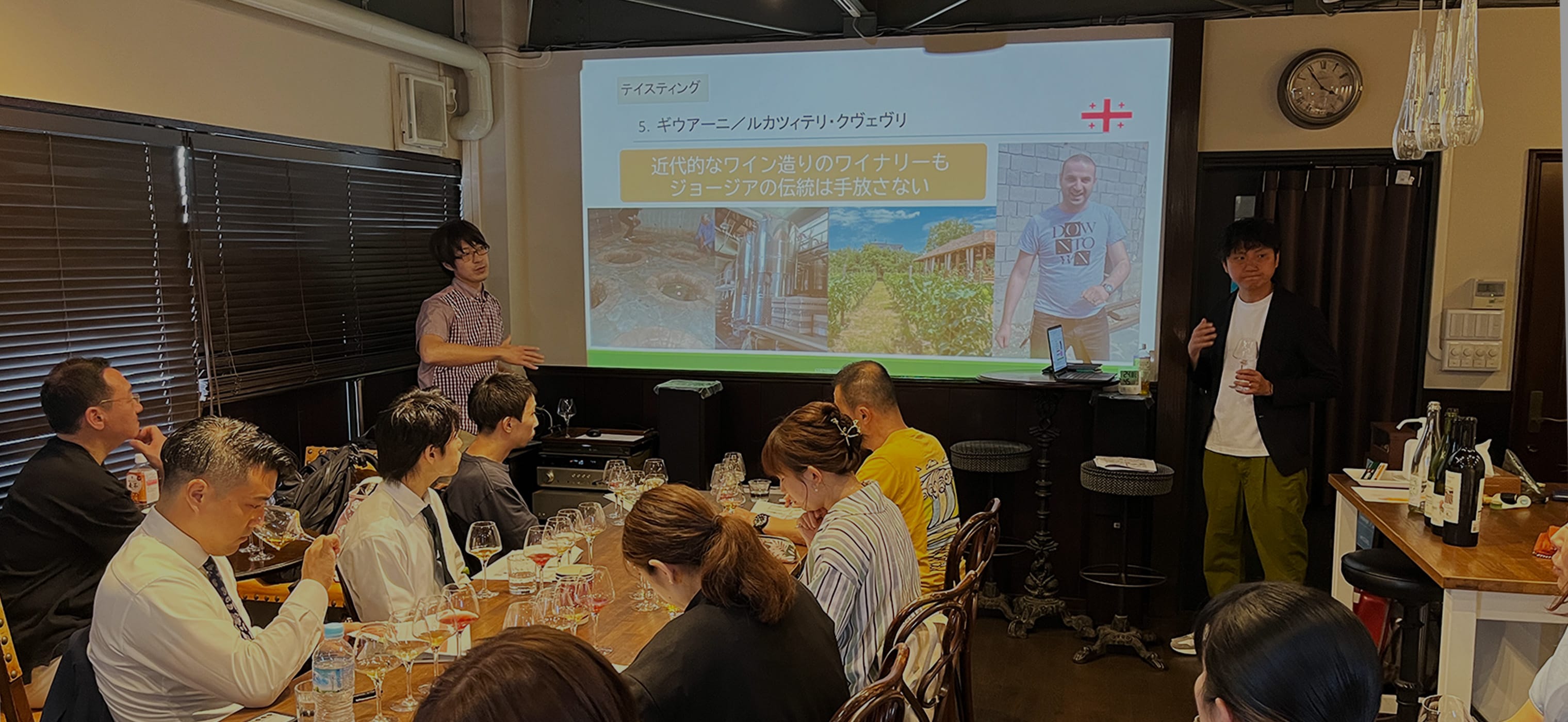 私たちは「ナチュラルワインの本質を理解し、考える力を育み、個性豊かなナチュラルワインの本当の楽しみ方・扱い方を知ってほしい」という想いで2023年4月にこの教室をスタートしました。この学びの場では、初心者から愛好家まで、インポーターならではの直接現地訪問で得た情報や映像を交えながら、参加者がナチュラルワインを捉え、考える力を身につけ、より深く楽しむことができるようサポートしています。
